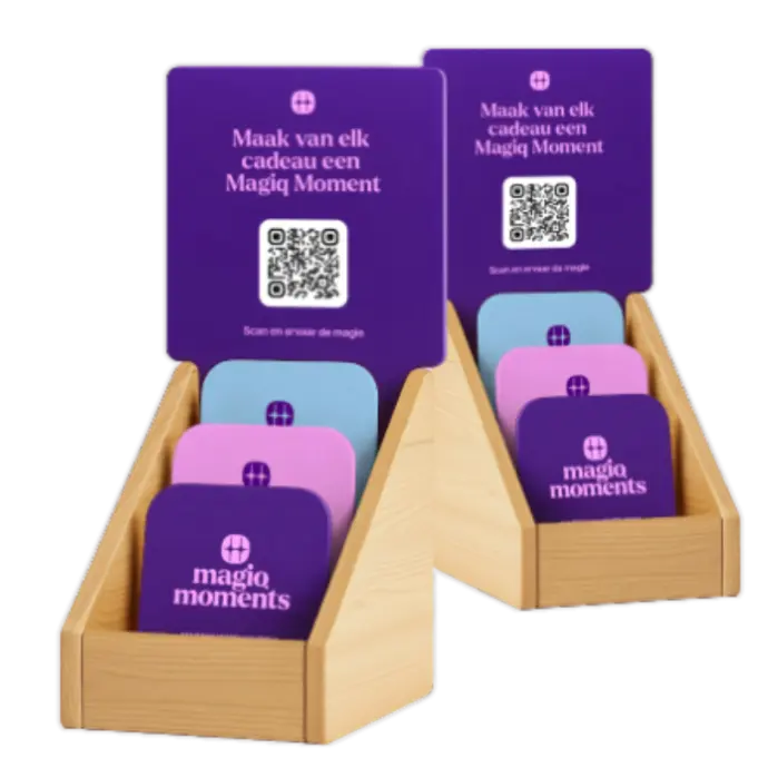 Met het Magiq display geef je jouw klanten iets bijzonders: een klein kaartje dat van elk cadeau een persoonlijke verrassing maakt. Voor jou betekent dat extra omzet, zonder extra moeite.
